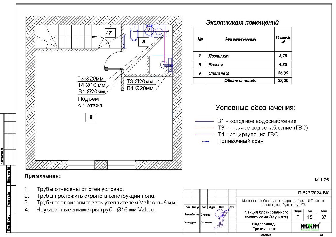 Внутренний водопровод таунхауса в КП "Кембридж" (проект водоснабжения).