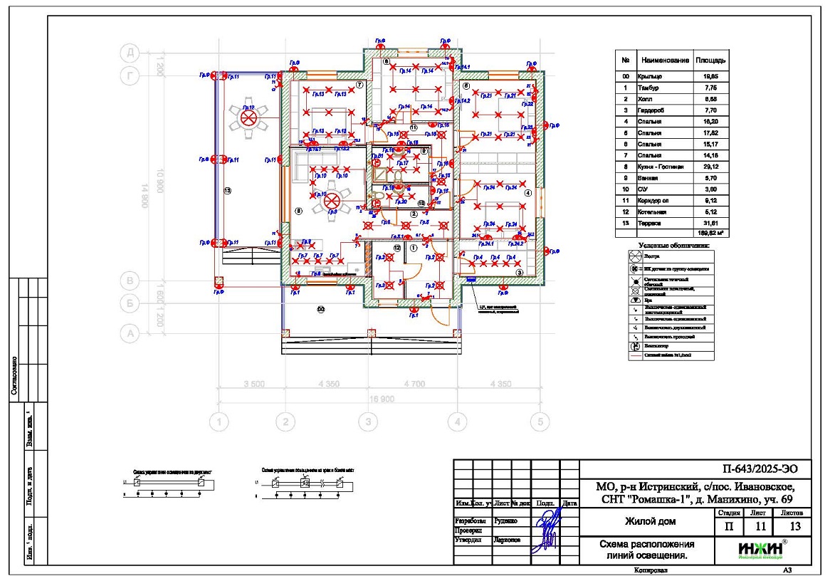 Объем проекта электрики дома 190 м.кв.: 13 листов.