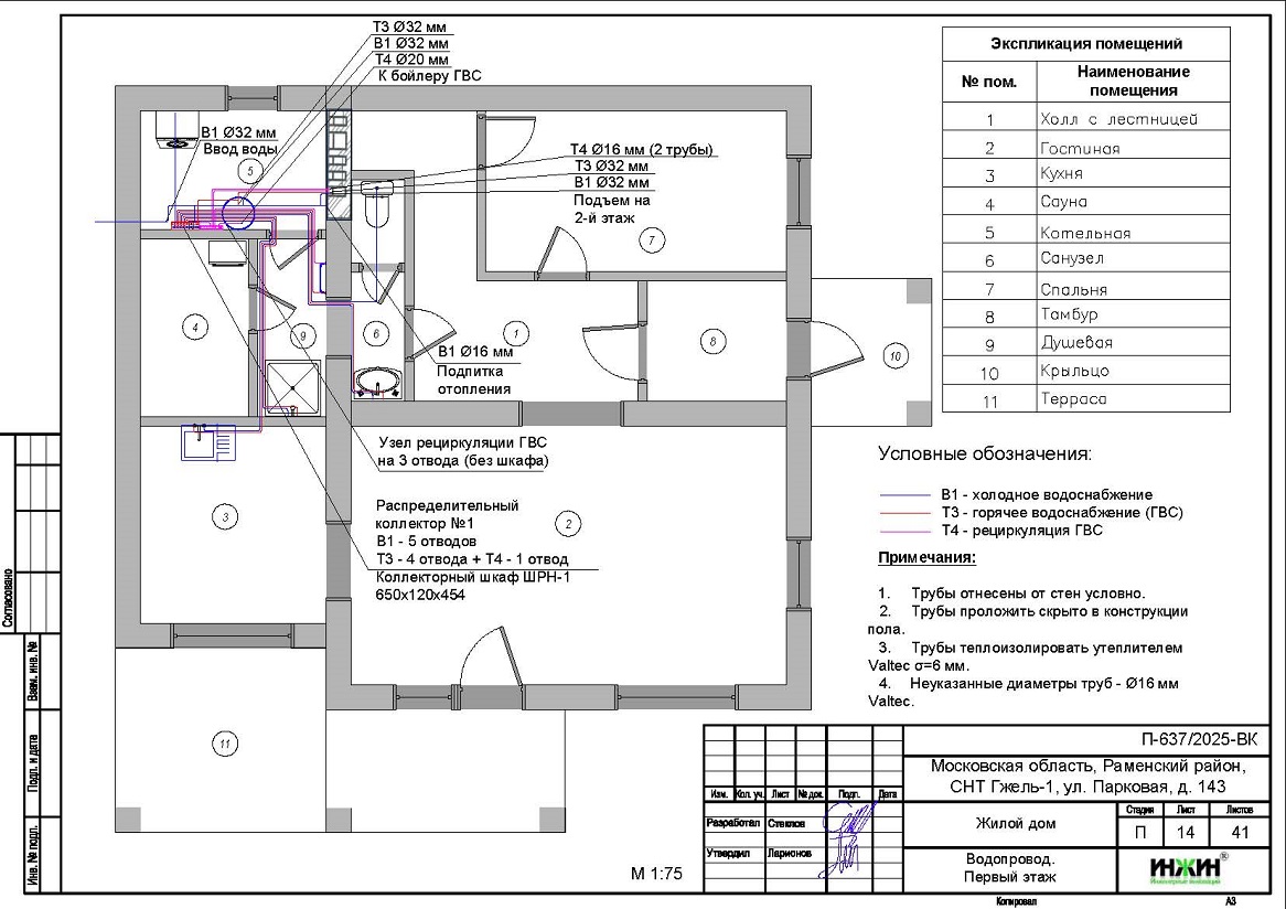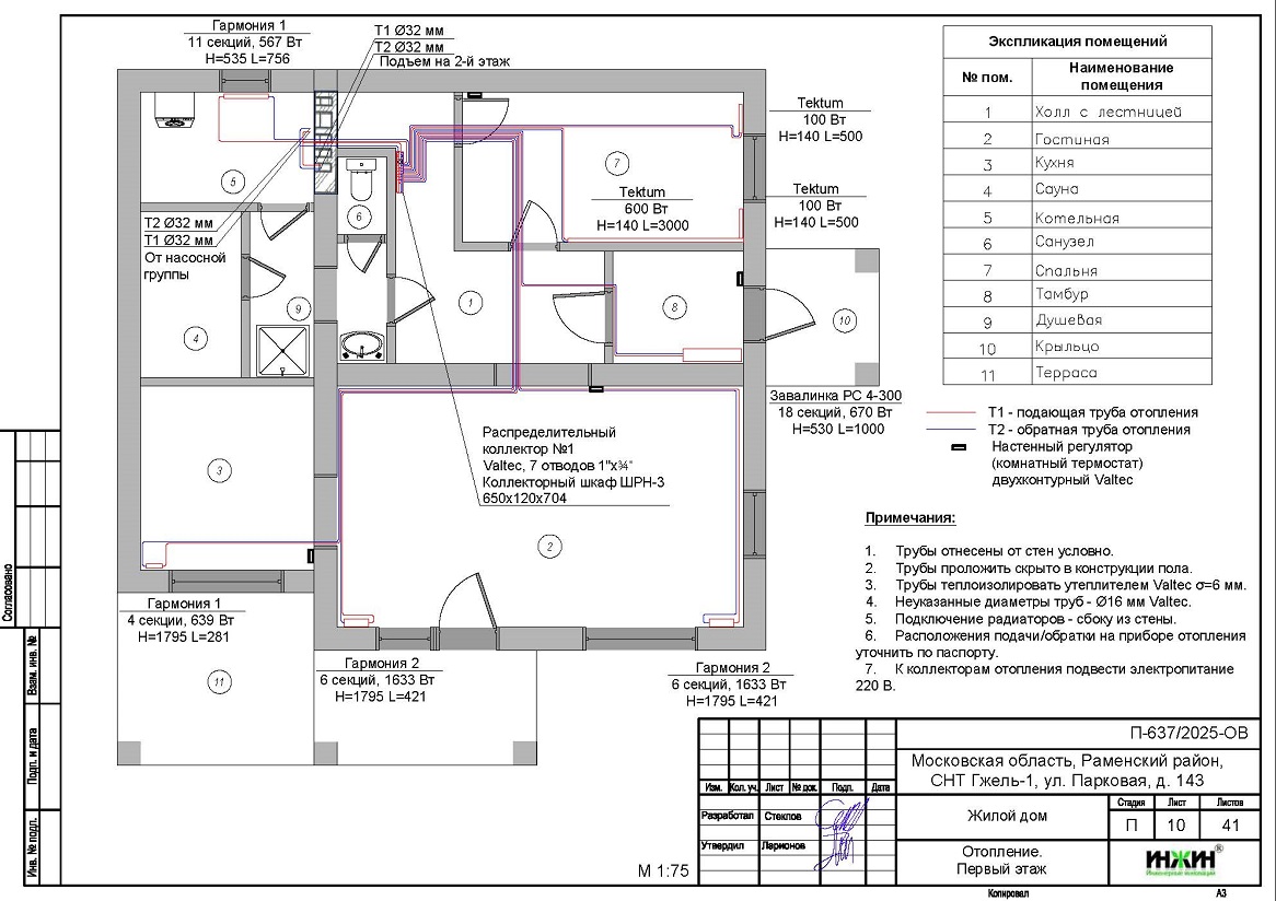 Объем проекта отопления, канализации и водоснабжения дома в СНТ "Гжель": 41 лист.
