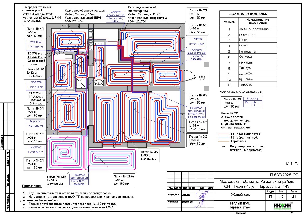 Водяной теплый пол дома в СНТ "Гжель"(проект теплого пола).