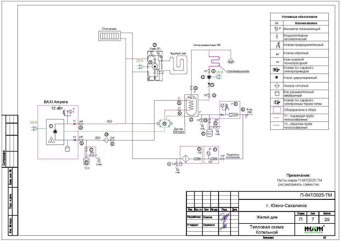 Состав проекта котельной, отопления дома в Южно-Сахалинске: