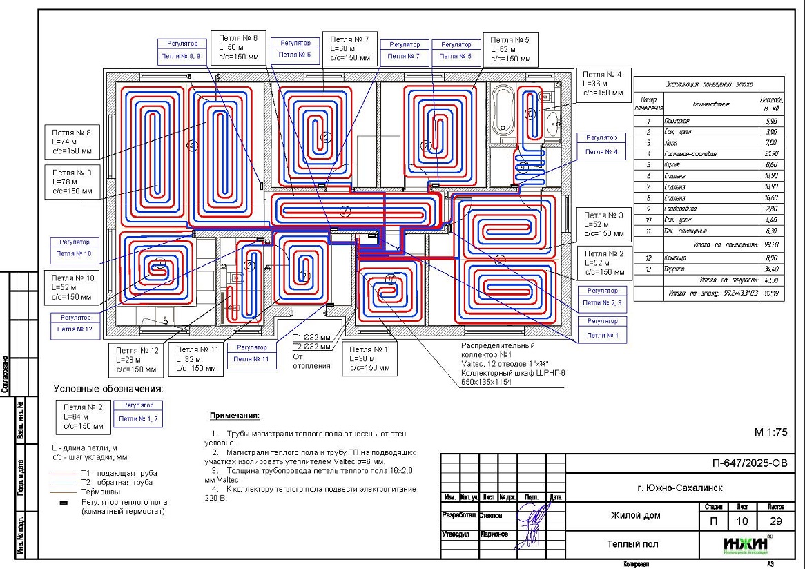 Проект отопления дома 99 м.кв. (г. Южно-Сахалинск)
