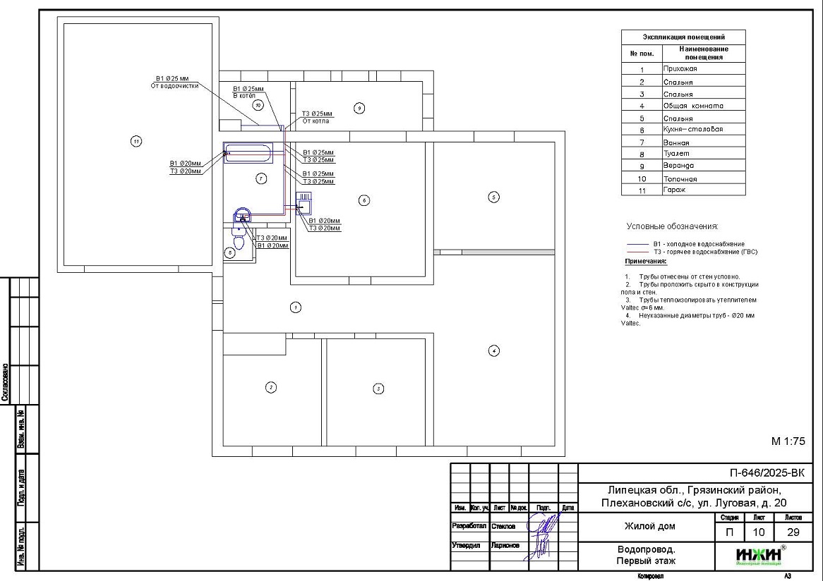 Внутренний водопровод дома в Плехановском с/с Липецкой области(проект водоснабжения).