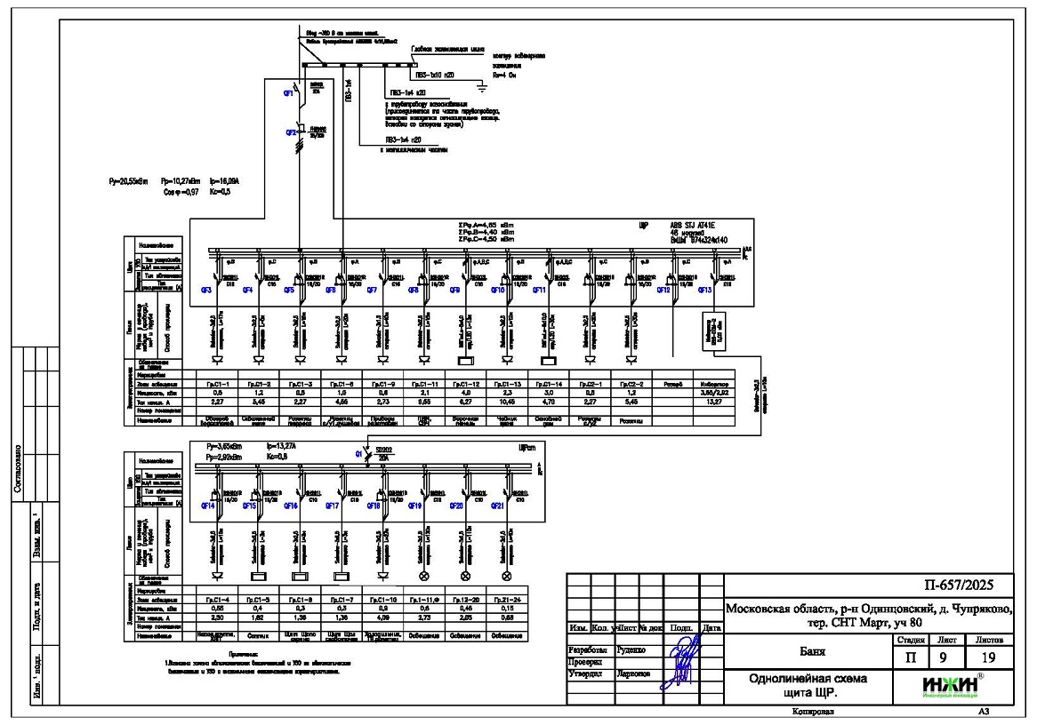 2. Однолинейные схемы вводного распределительного устройства и электрического распределительного щита частной бани 150 м.кв.