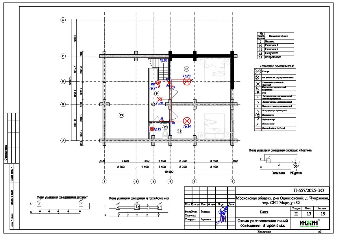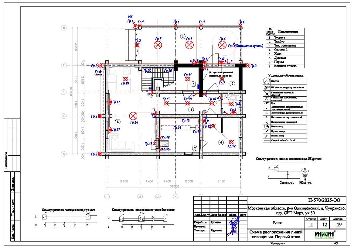 4. Чертежи групповых осветительных сетей бани в СНТ «Март».