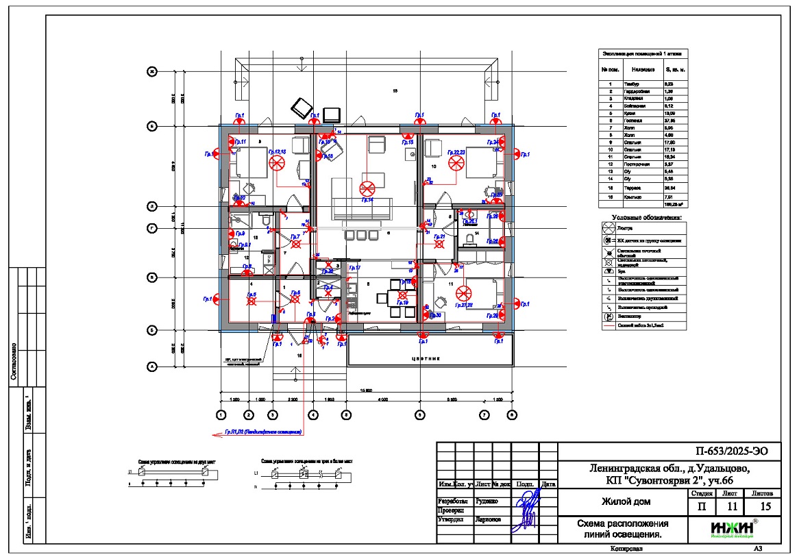 Для этого дома в КП "Сувонтоярви 2" Ленинградской областивыполнен проект электрики.