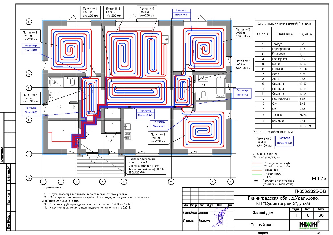 Водяной теплый пол дома в КП "Сувонтоярви 2" Ленинградской области(проект теплого пола).