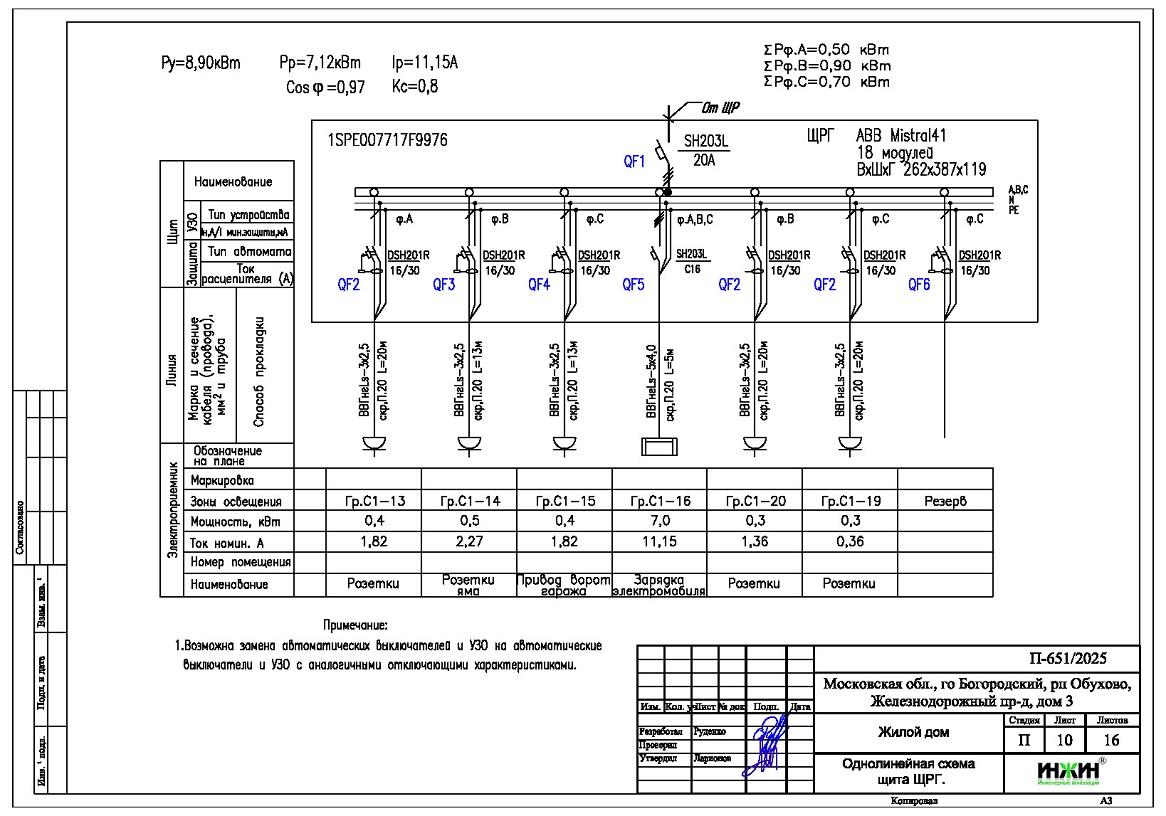 Состав проекта электрики дома в рп Обухово Богородского г.о.: