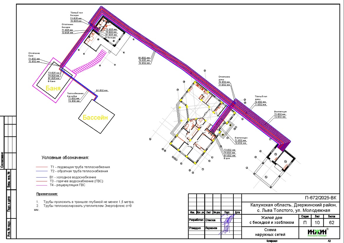 5. Комплект чертежей водоснабжения и канализации частного комплекса строений в с. Льва Толстого Калужской области.