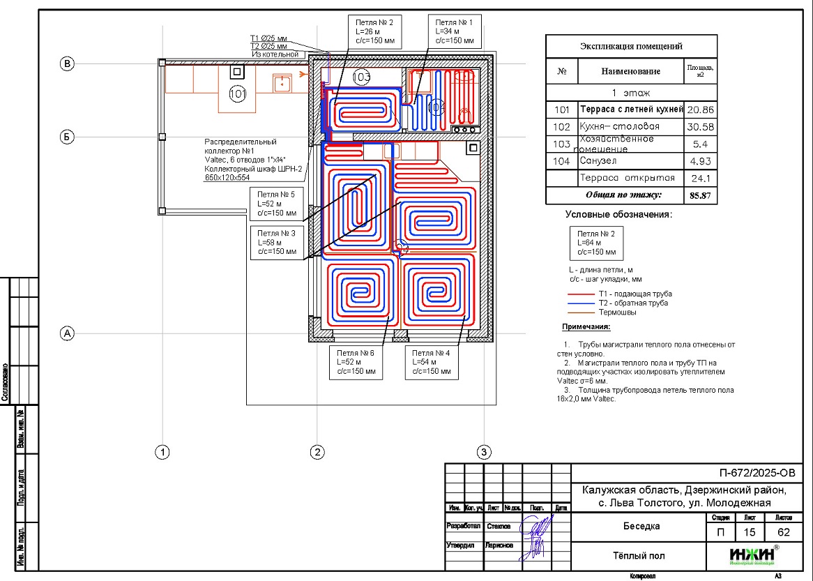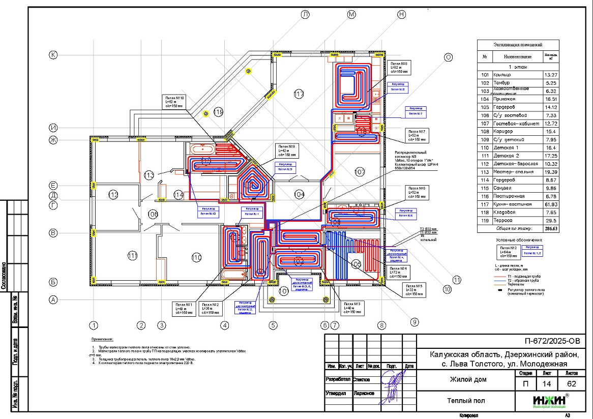 Водяной теплый пол комплекса строений в с. Льва Толстого Калужской области (проект теплого пола).