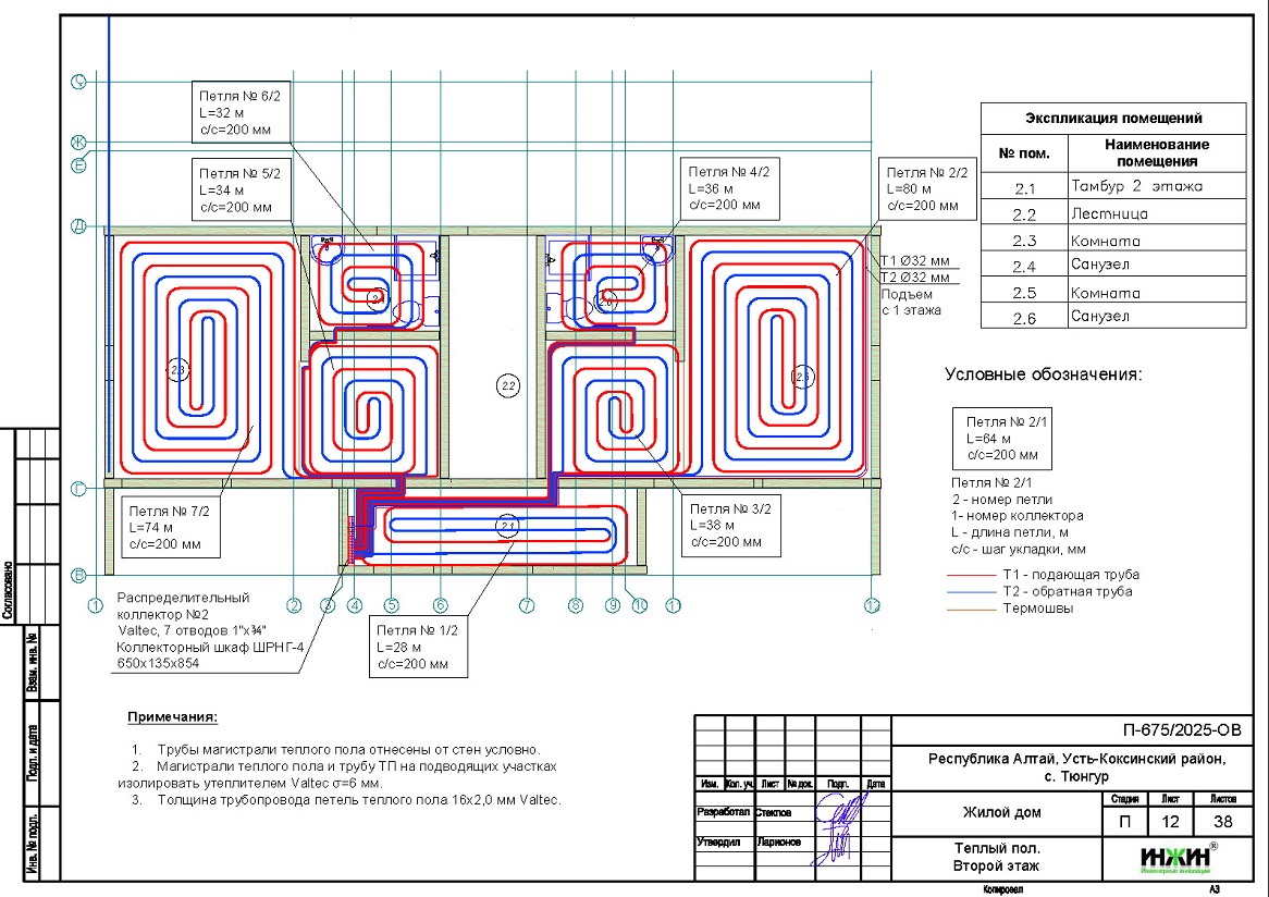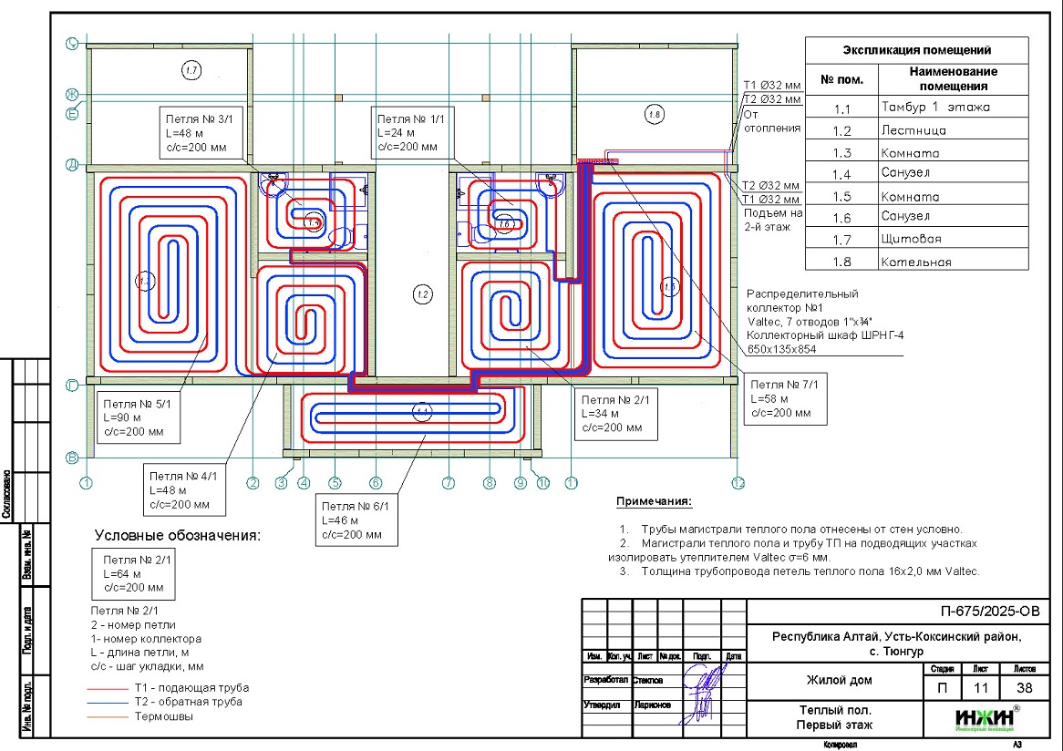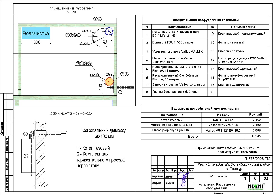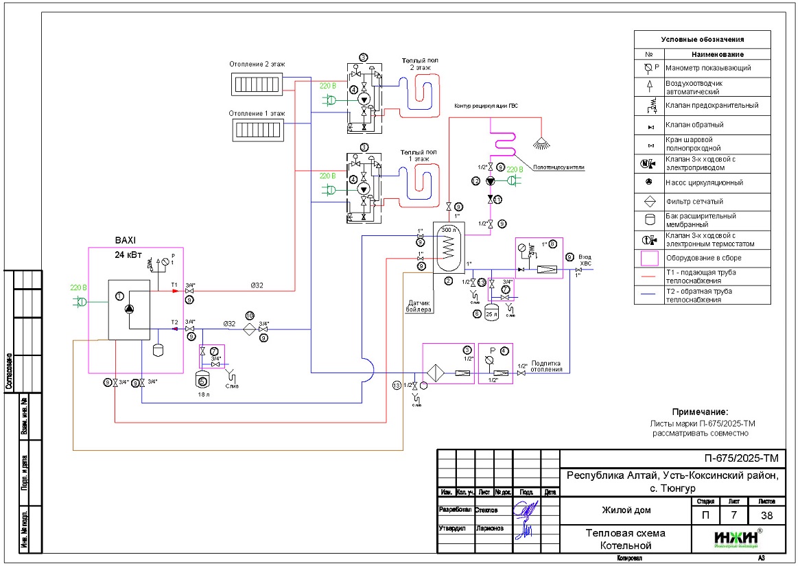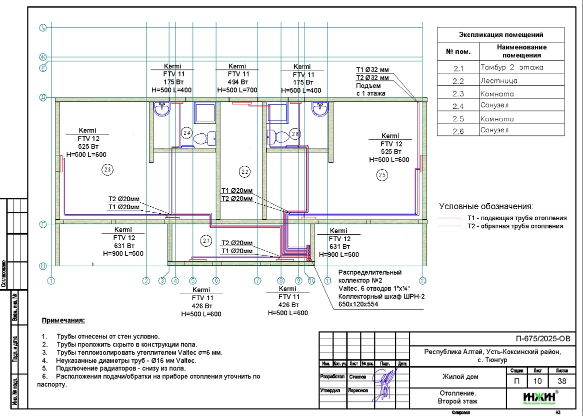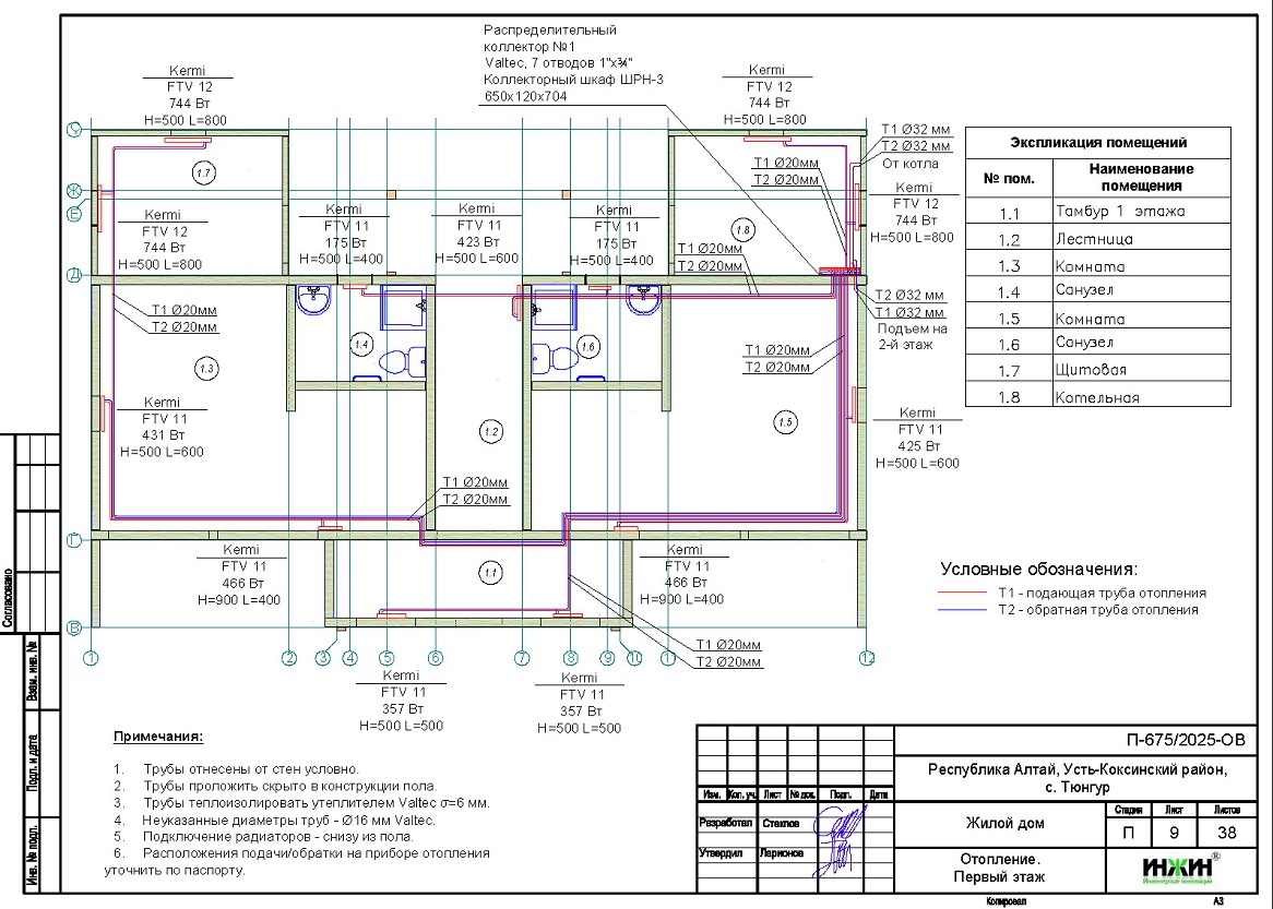 Объем проекта отопления и водоснабжения дома в с.Тюнгур, Республика Алтай: 38 листов.