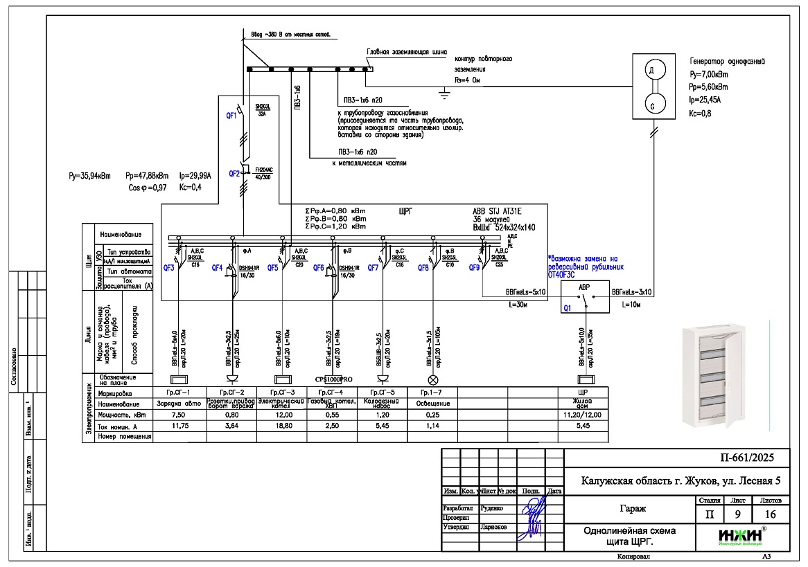 2. Однолинейные схемы вводного распределительного устройства и электрического распределительного щита дома и гаража 209 м.кв.