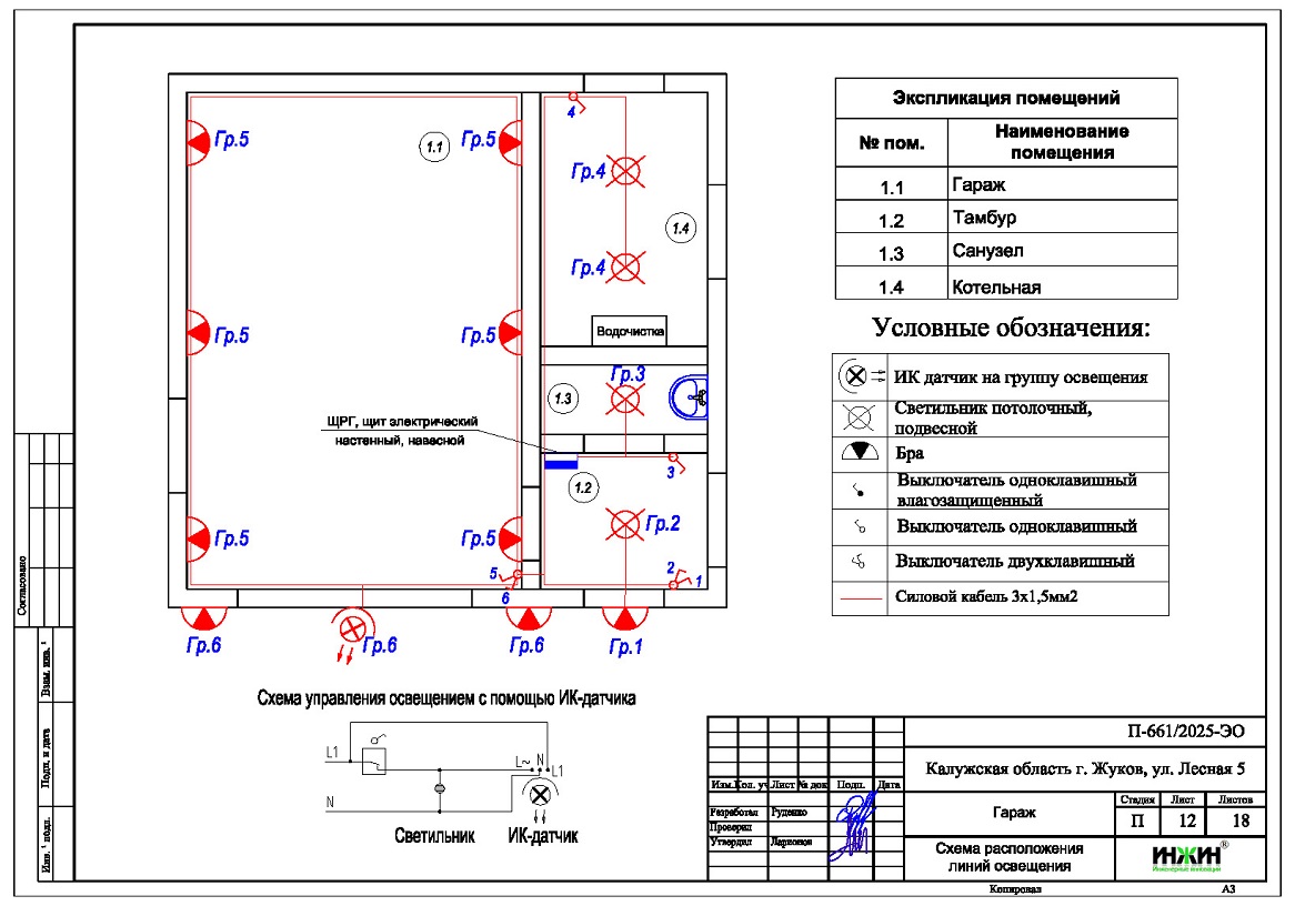4. Чертежи групповых осветительных сетей дома в г. Жуков Калужской области.