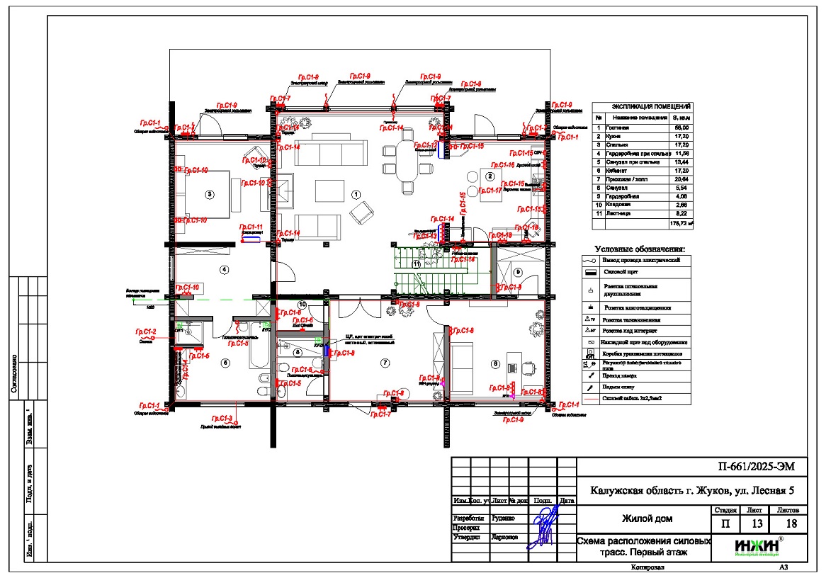 3. Чертежи электропроводки дома в г. Жуков Калужской области.