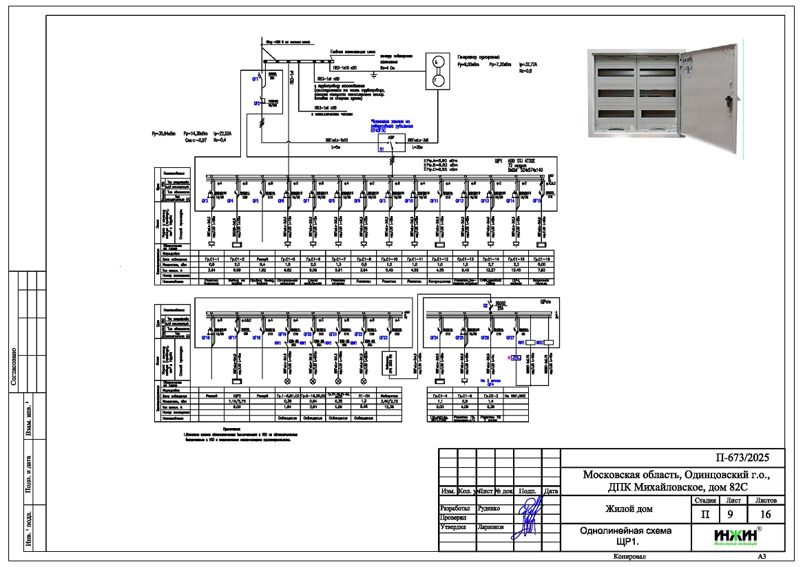 2. Однолинейные схемы вводного распределительного устройства и электрического распределительного щита дома 401.