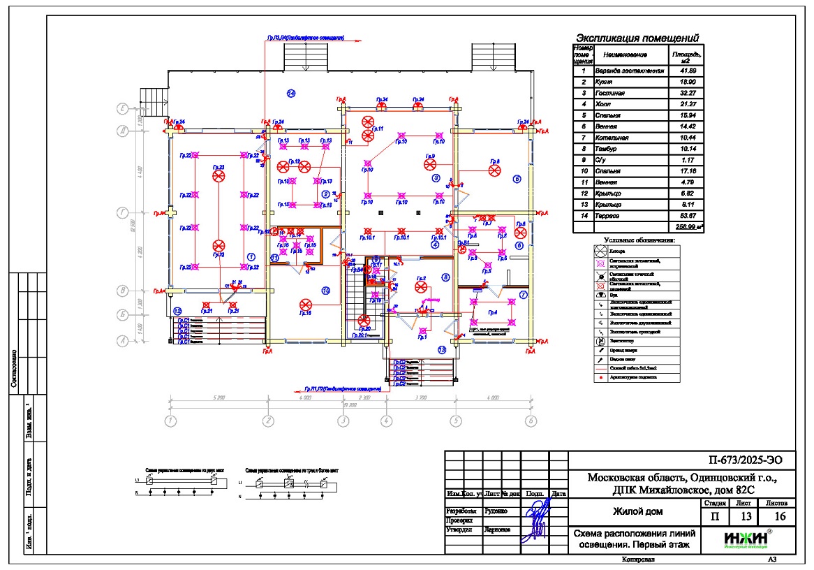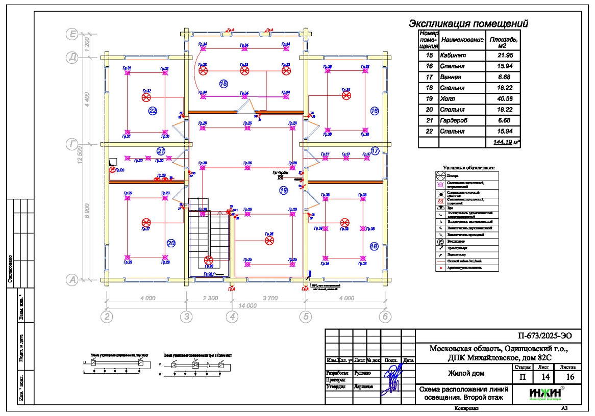 4. Чертежи групповых осветительных сетей дома в ДПК Михайловское Одинцовского г.о.