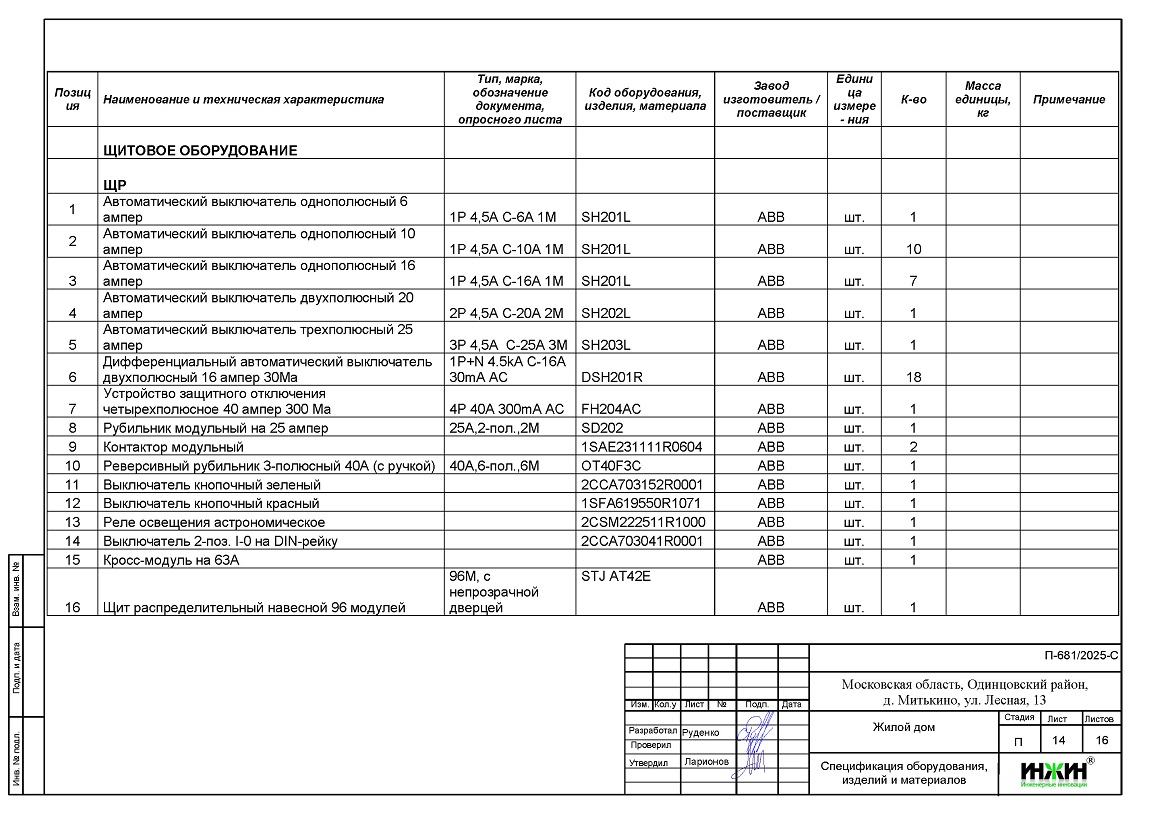 Состав проекта электрики дома в д. Митькино.