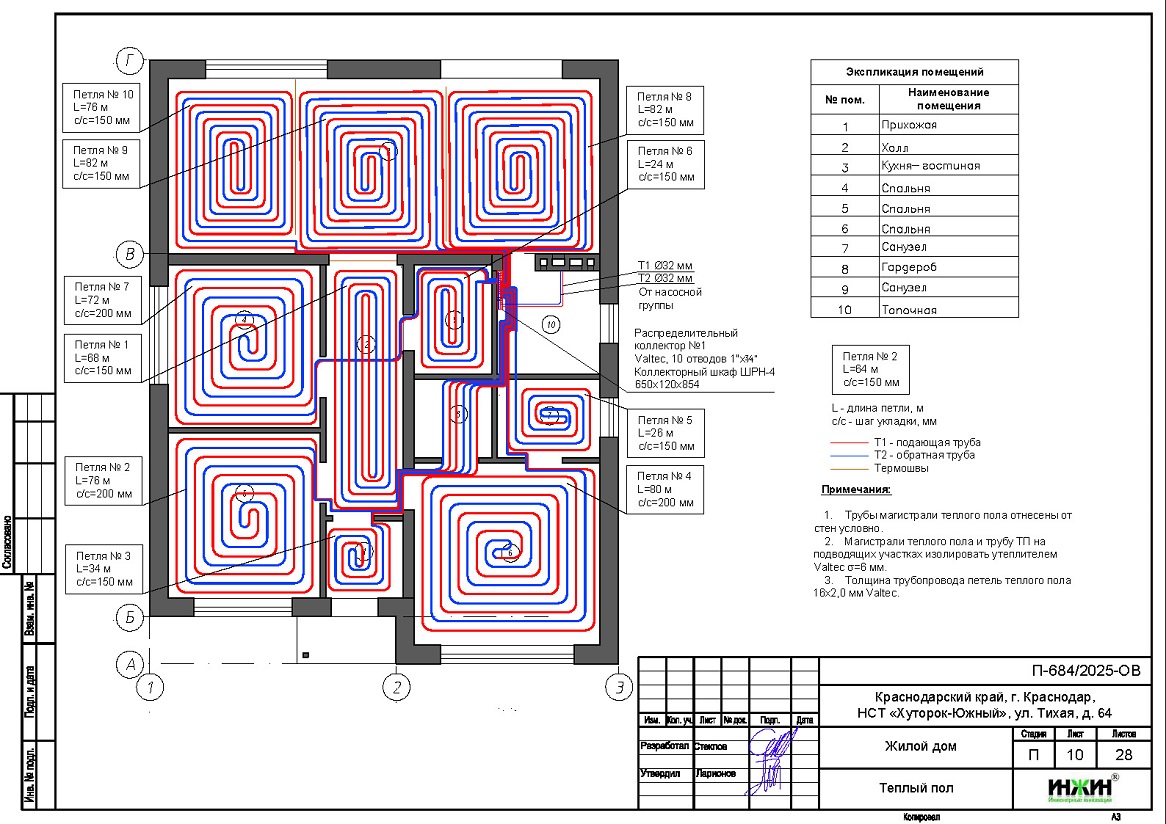 Объем проекта отопления дома в Краснодаре: 28 листов.