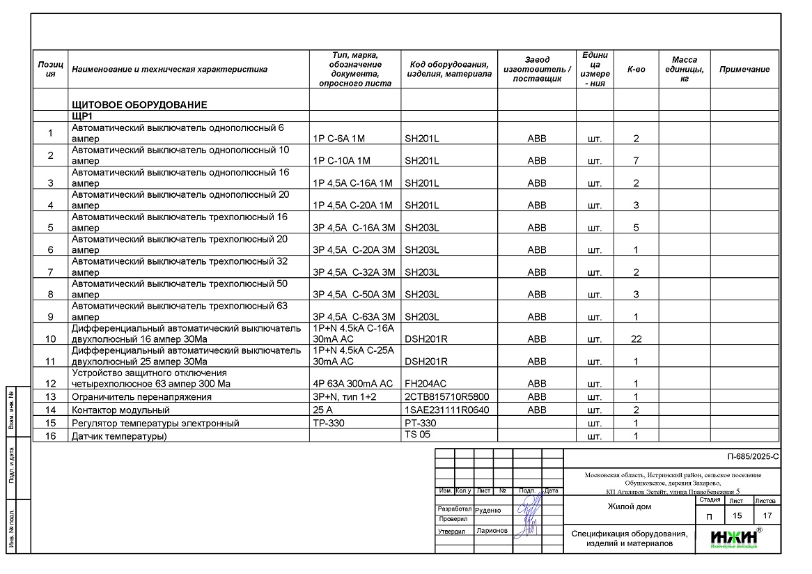 Проект электрики выполнен: 10.03.2026