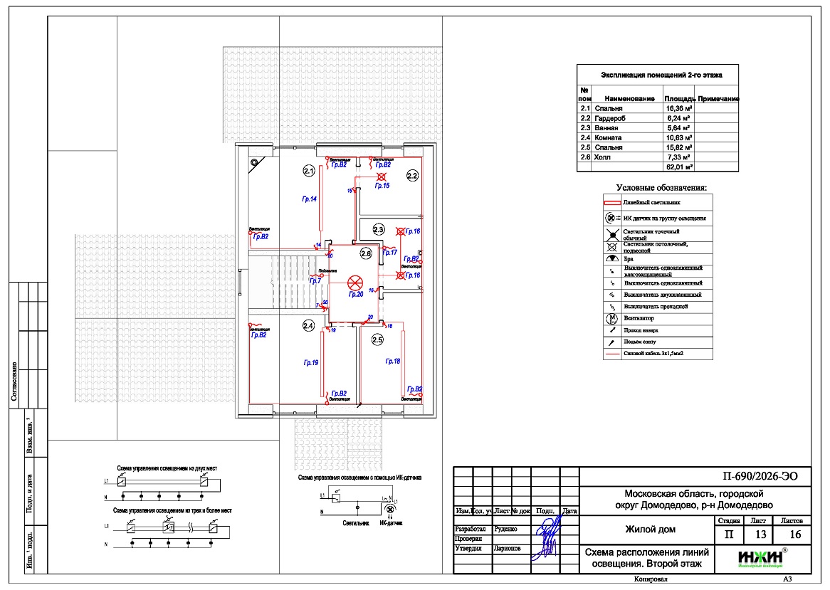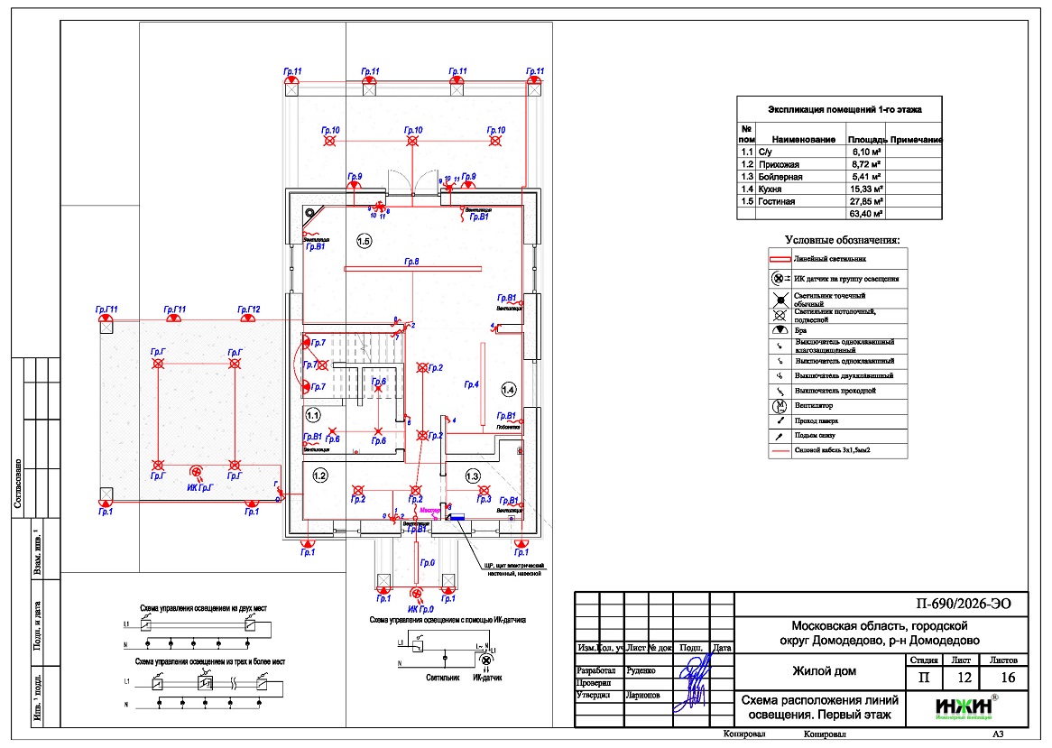 4. Чертежи групповых осветительных сетей дома в Домодедово.