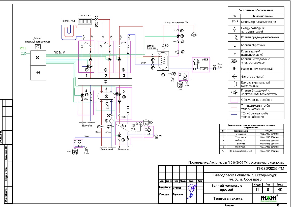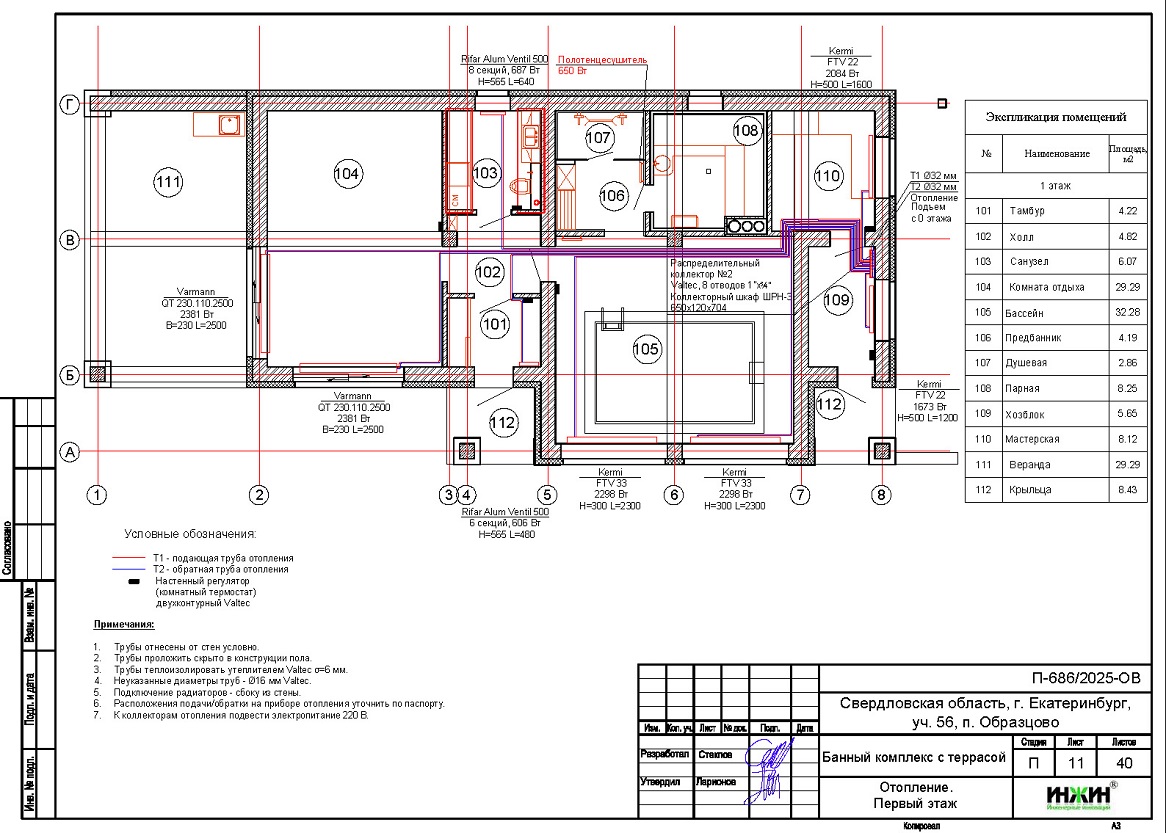 Объем проекта отопления, канализации и водоснабжения бани в Екатеринбурге: 40 листов.