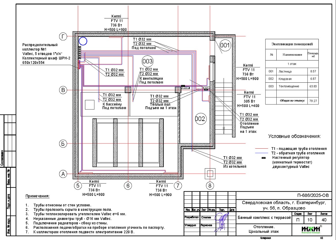 3. Комплект поэтажных чертежей радиаторного отопления бани в Екатеринбурге.