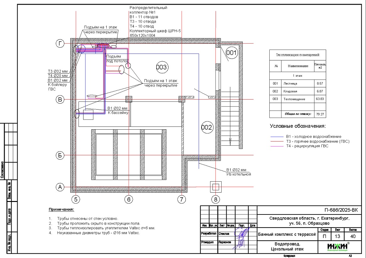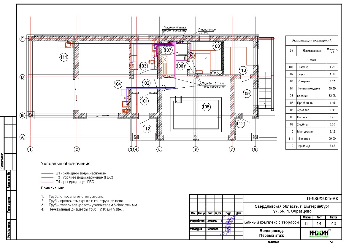 Внутренний водопровод бани в Екатеринбурге (проект водоснабжения).