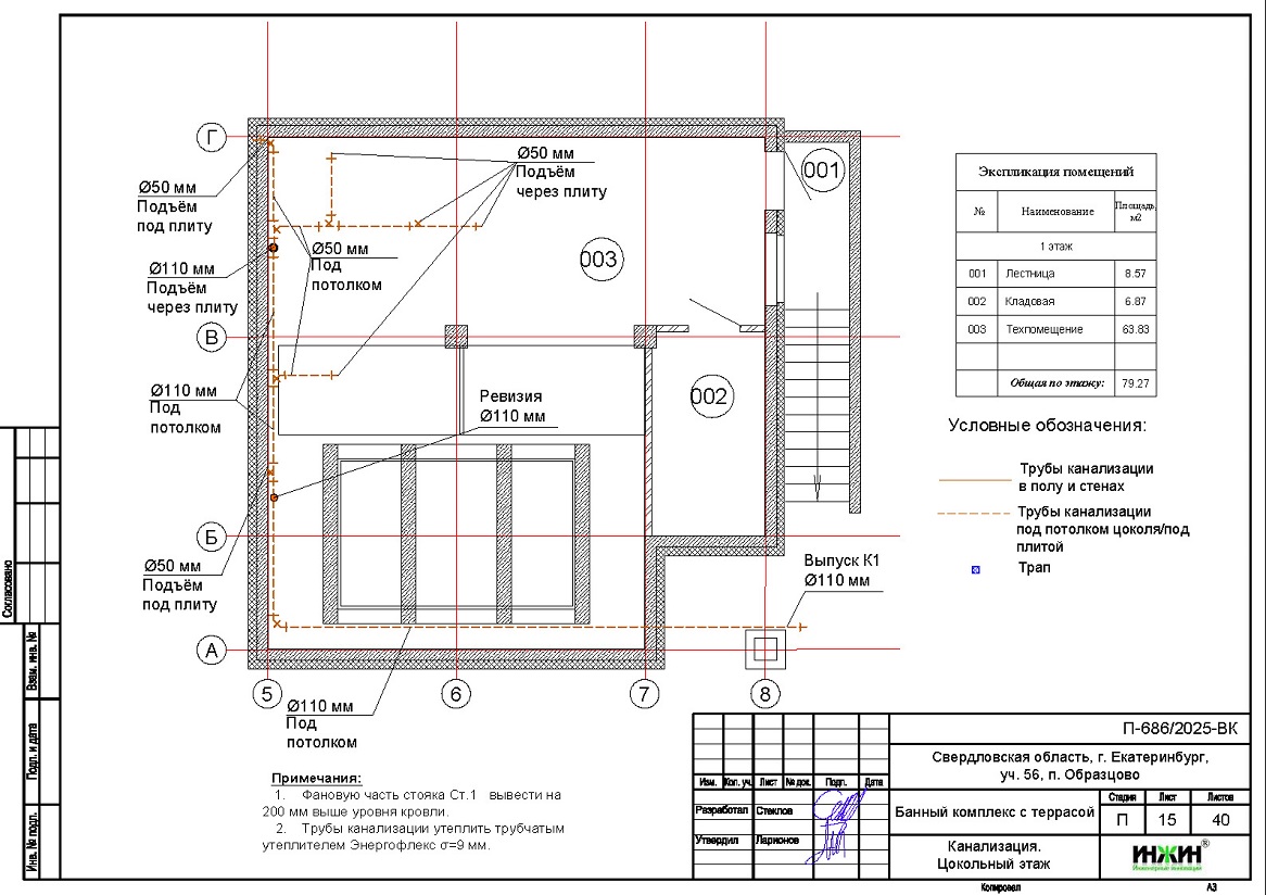 Внутренняя канализация (проект канализации) бани в Екатеринбурге.