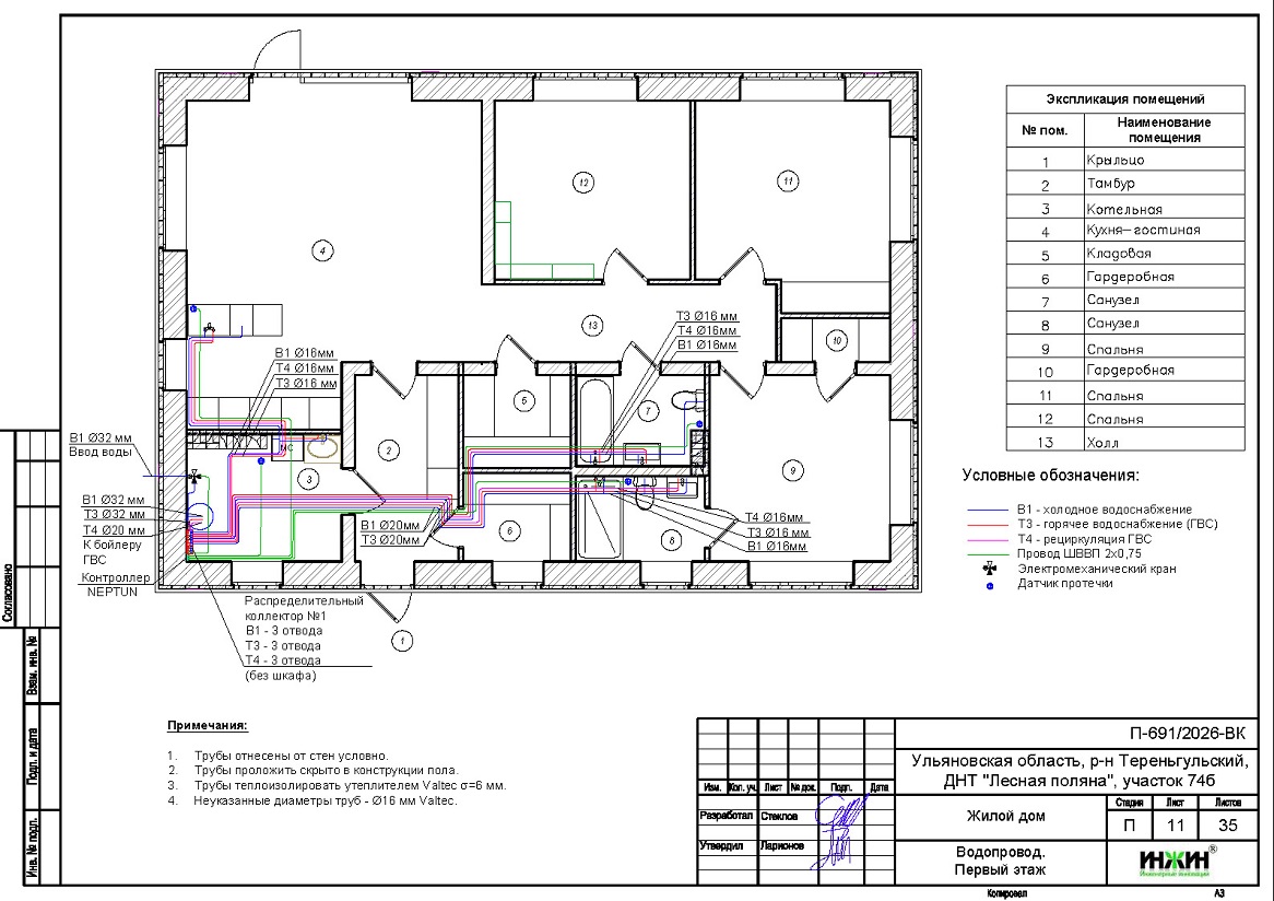 Проект котельной, отопления и водоснабжения выполнен: 04.03.2026