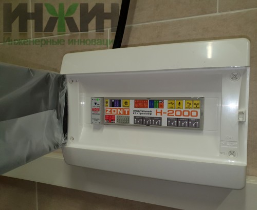 Для обеспечения функции информирования владельца частного дома о работе котла, наличии электроэнергии и срабатывания системы защиты от протечки воды (если есть), устанавливаем модули GSM-управления ZONT H-1V отечественного производства.