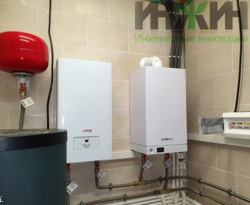 Особенности - максимальные затраты на реализацию и обслуживание, необходима большая площадь котельной, достаточная для установки двух котлов.