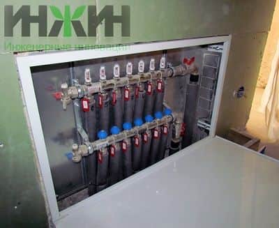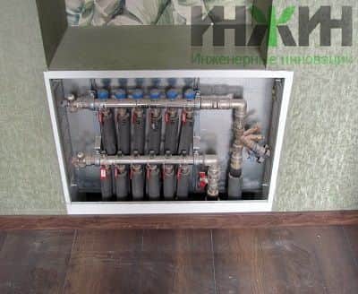 - установку встроенного или пристроенного коллекторного шкафа теплого пола на 8-12 отводов;