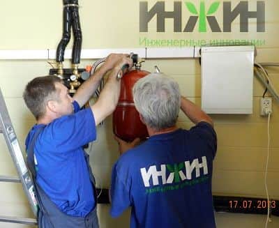 - заполнение трубопроводов и приборов отопления теплоносителем;