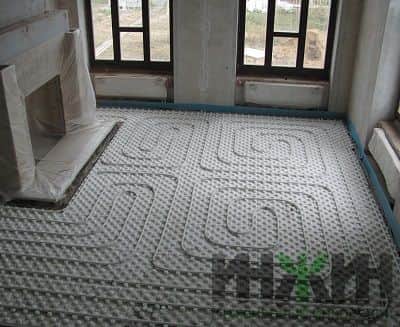 - укладку труб теплого пола на основание с заданным шагом между петлями;
