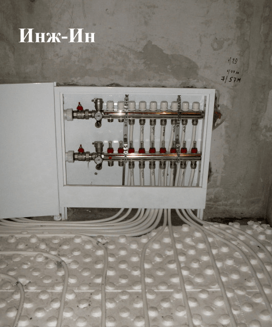 При укладке трубопроводов теплого пола использован ячеистый пенополистироловый утеплитель российского производства. Наличие «замков» на плитах позволяет крепить их друг с другом, образуя устойчивую поверхность по всей плоскости помещения.