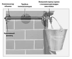 Защита от замерзания достигается за счет использования автоматического клапана (компенсатора), предотвращающего разрыв трубы при замерзании в нем воды. Используется для стен толщиной от 135 мм до 500 мм.