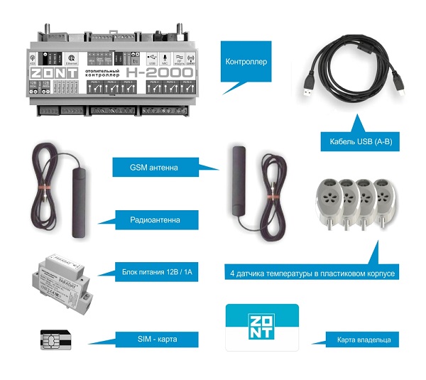 Контроллер управления отоплением ZONT H-2000 является развитием модели прошлого года H-1000 и отличается от нее следующими особенностями: