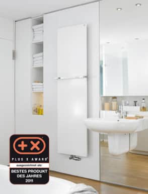 Новые модели дизайн-радиаторов для ванных комнат Zehnder Fina отличаются от аналогов магнитными держателями для полотенец, которые выдерживают вес до 5 кг. За счет магнитных креплений эти держатели могут устанавливаться на любой высоте. и при этом легко перемещаются по лицевой панели радиатора. Подвижные боковые панели полностью закрывают пространство между полотенцесушителем и стеной: крепления и детали технического оснащения остаются невидимыми, благодаря чему сохраняется визуальная привлекательность.