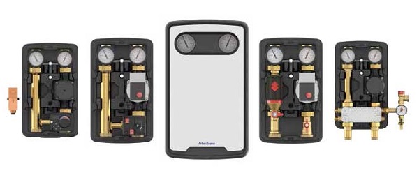 Модельный ряд: 14 комплектов насосных групп (без насосов), три коллектора, две гидравлические стрелки и группа с раздельным теплообменником TrennSystem (в четырех комплектациях).